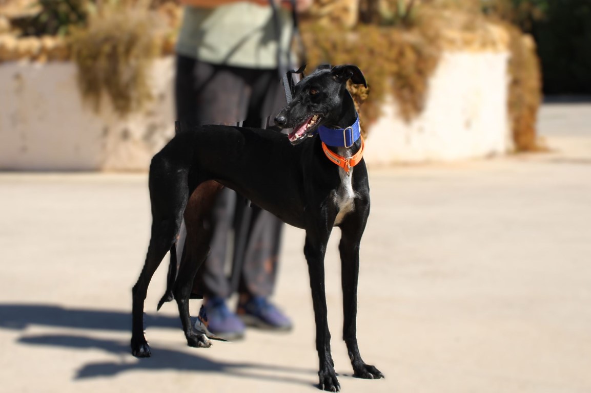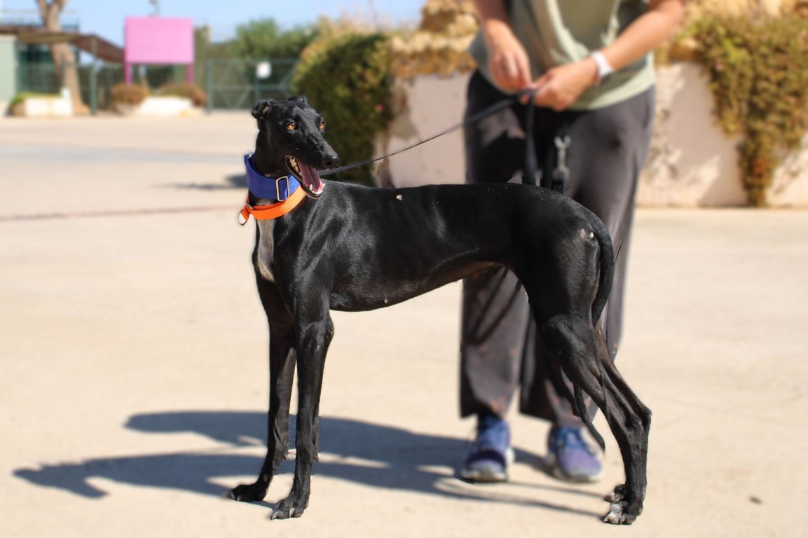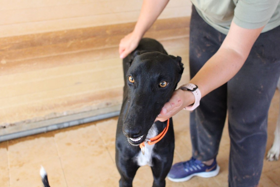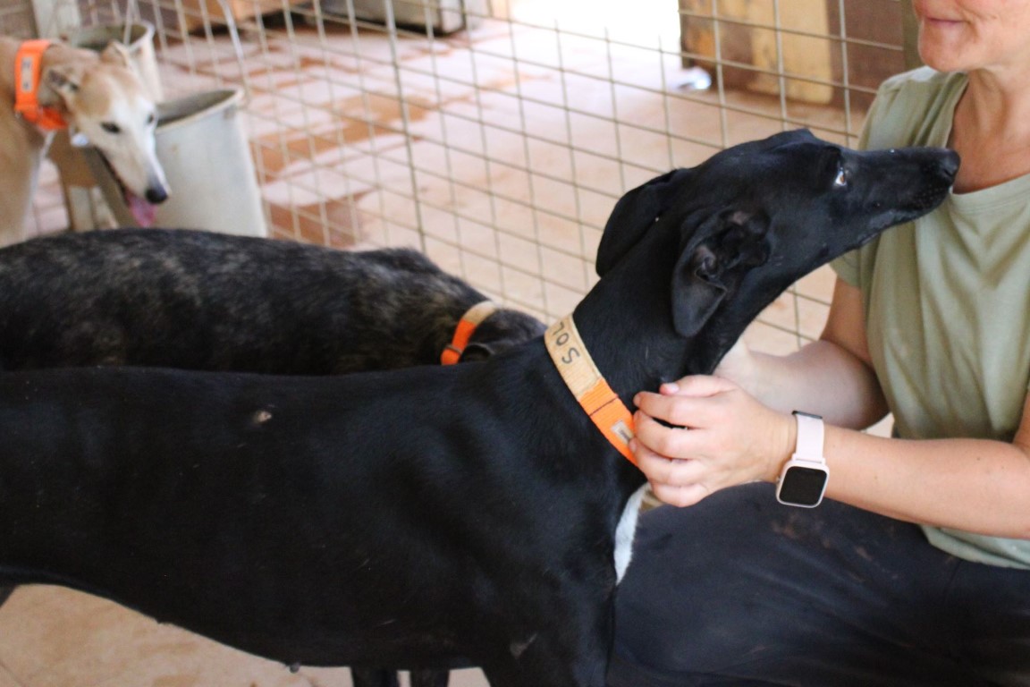 Sol est une galga splendide et qui n’a aucune crainte des humains qu’elle connait.